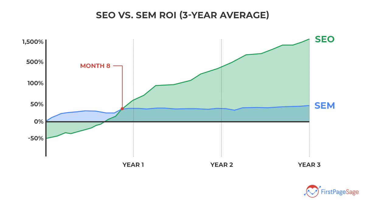 Graph of SEO vs. SEM ROI 3-year average.
