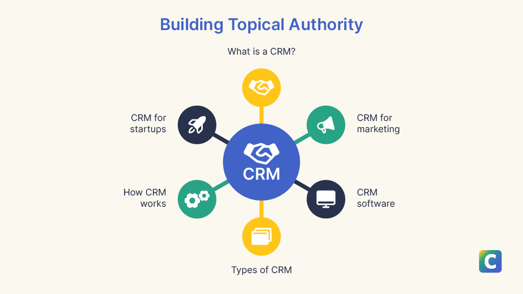 Building topical authority for keyword CRM.