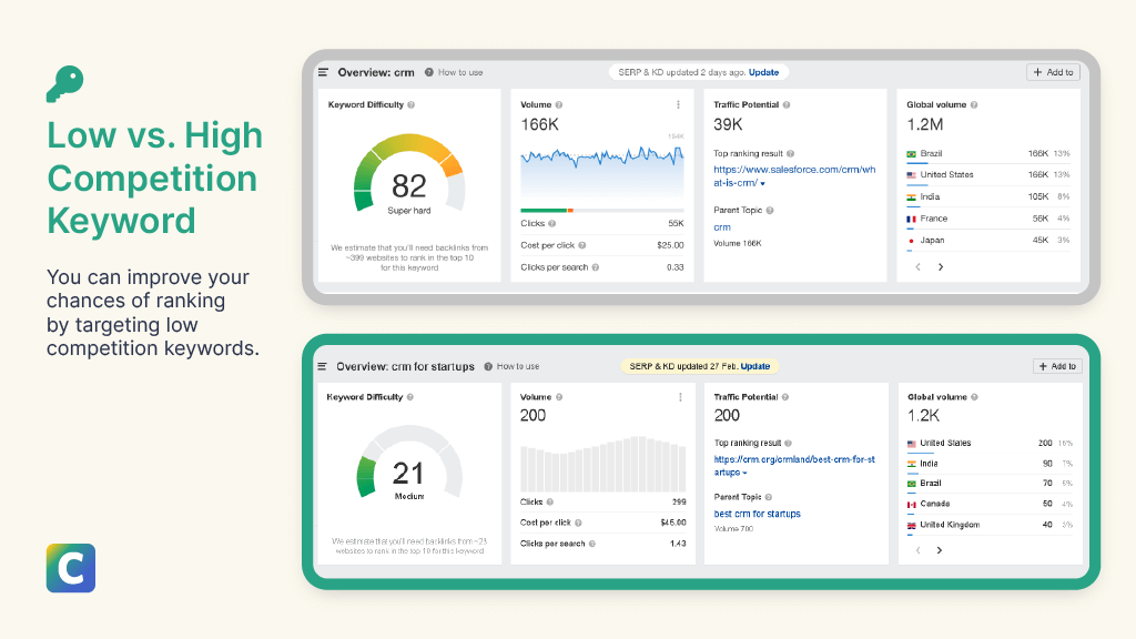 Low competition keywords, on the other hand, don’t require as much effort to rank for, and they can be especially useful to newer websites.