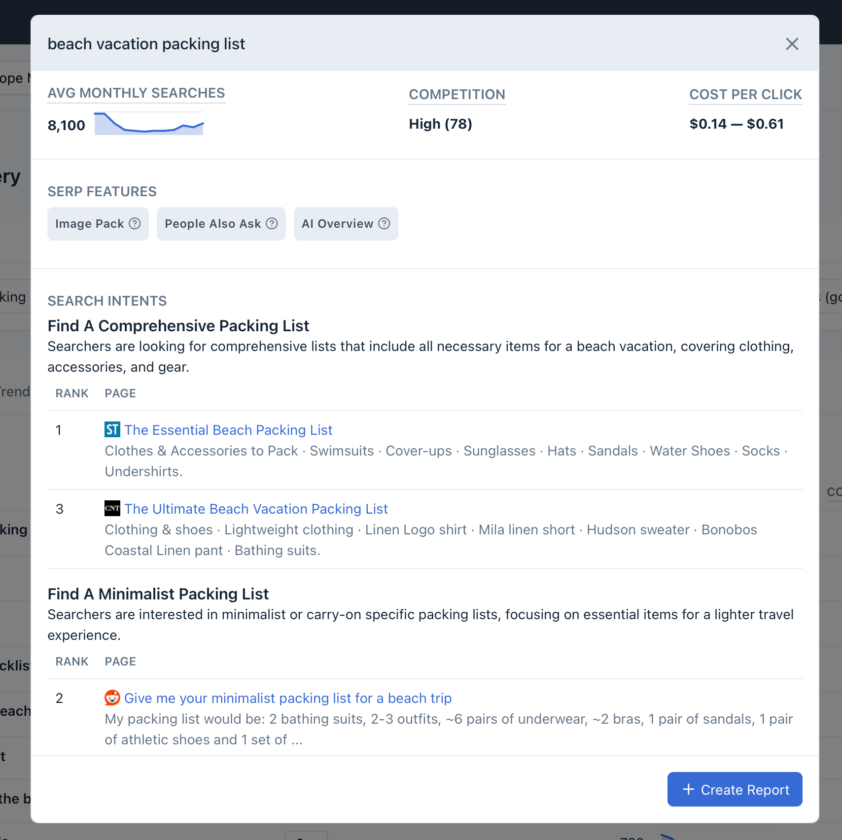 • See what content types and formats are actually ranking in the SERP—whether it’s listicles, how-to guides, product pages, or in-depth tutorials