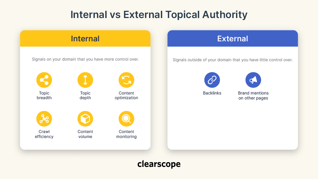 This is where your website’s content really shines. Internal topical authority refers to how well-organized and detailed your content is across core topics.