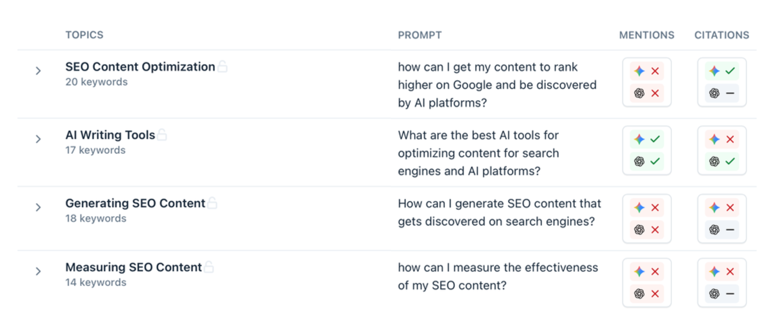 When it comes to ranking in LLM-powered search engines, creating content blindly won’t cut it. You need to know what the AI is looking for when it's answering prompts.